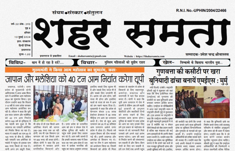 दैनिक E Paper | 13 जुलाई 2024 By shaharsamta - 13 July 2024 0 180 FacebookTwitterPinterestWhatsApp 13-JULY-Shahar-Samta-1Download