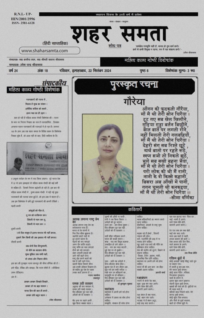 विचार मंच व काव्यगोष्ठीविशेषांक 22 सितम्बर 2024 | महिला काव्य गोष्ठी विशेषांक – सितम्बर 2024 By shaharsamta - 30 September 2024 0 320 FacebookTwitterPinterestWhatsApp mkg sep 24 Download