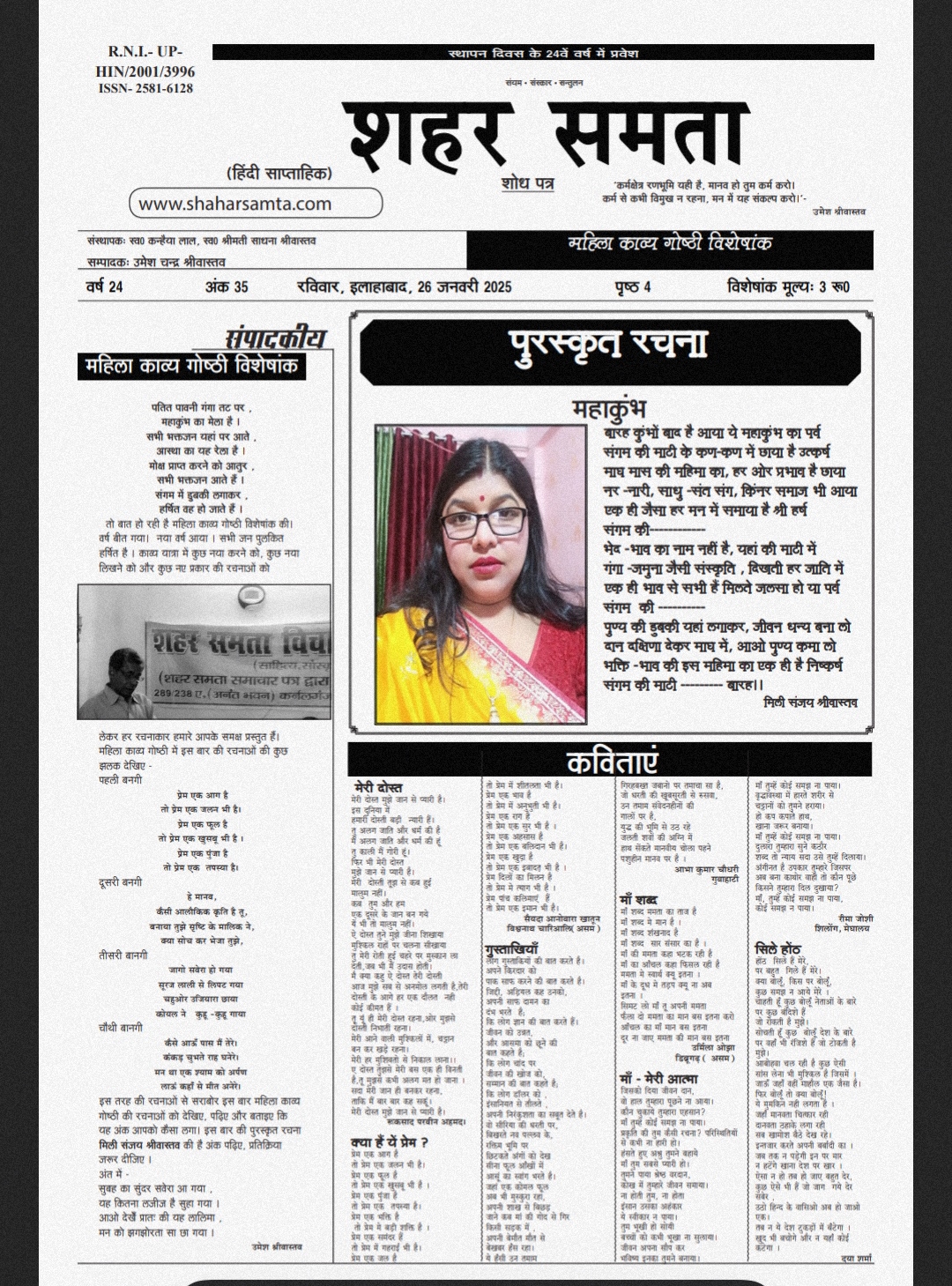 विचार मंच व काव्यगोष्ठीविशेषांक महिला काव्य गोष्ठी विशेषांक – जनवरी 2025 By shaharsamta - 10 February 2025 0 188 FacebookTwitterPinterestWhatsApp Shahar samta mahila kavya goshthi 1 25Download mkg for mobileDownload