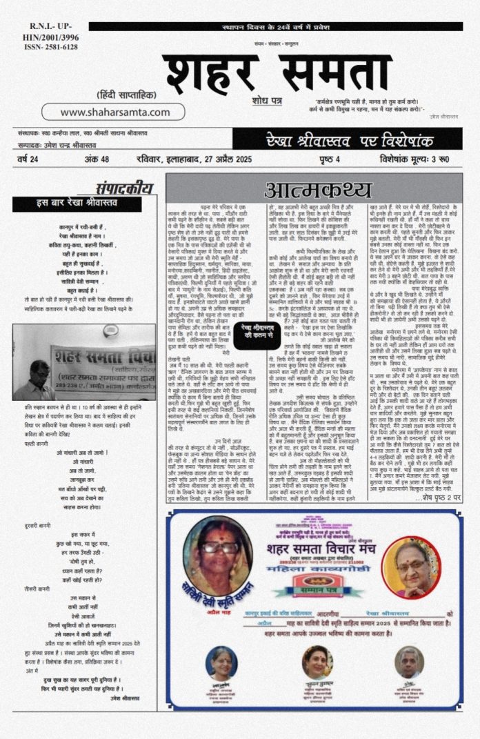 लेख और कविताएंविचार मंच व काव्यगोष्ठीविशेषांक अप्रैल 2025 सावित्री देवी सम्मान अंक – रेखा श्रीवास्तव | 27 अप्रैल 2025 By shaharsamta - 28 April 2025 0 2489 FacebookTwitterPinterestWhatsApp sdae-Sep24 final (2)Download