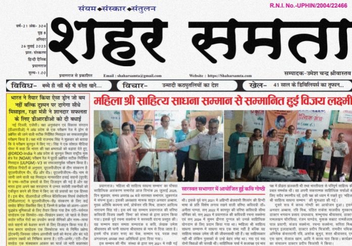 दैनिक E-paper | 26 जुलाई 2025 By shaharsamta - 26 July 2025 0 88 FacebookTwitterPinterestWhatsApp 26 july- Shahar SamtaDownload