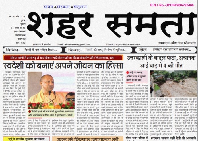 दैनिक E-paper | 6 अगस्त 2025 By shaharsamta - 5 August 2025 0 140 FacebookTwitterPinterestWhatsApp 06 aug- Shahar SamtaDownload