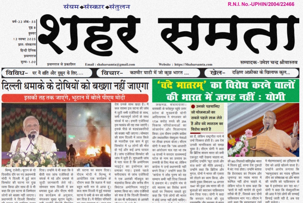 इलाहाबाददैनिक E Paper । 12 नवंबर 2025 By shaharsamta - 12 November 2025 0 62 FacebookTwitterPinterestWhatsApp 12 nov- Shahar SamtaDownload