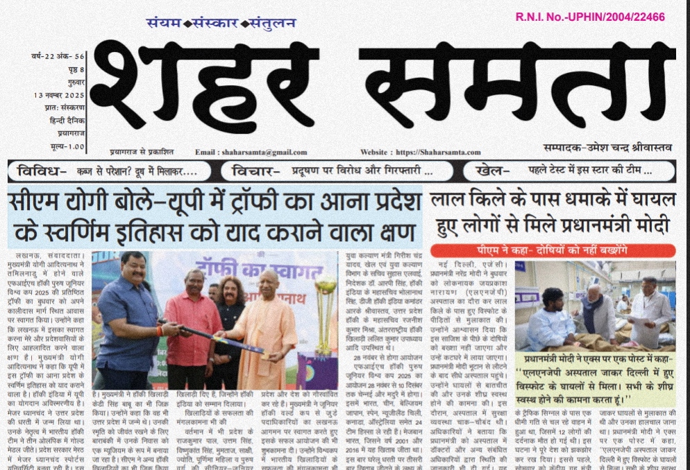 दैनिक E paper | 13 नवंबर 2025 By shaharsamta - 12 November 2025 0 34 FacebookTwitterPinterestWhatsApp 13 nov- Shahar SamtaDownload