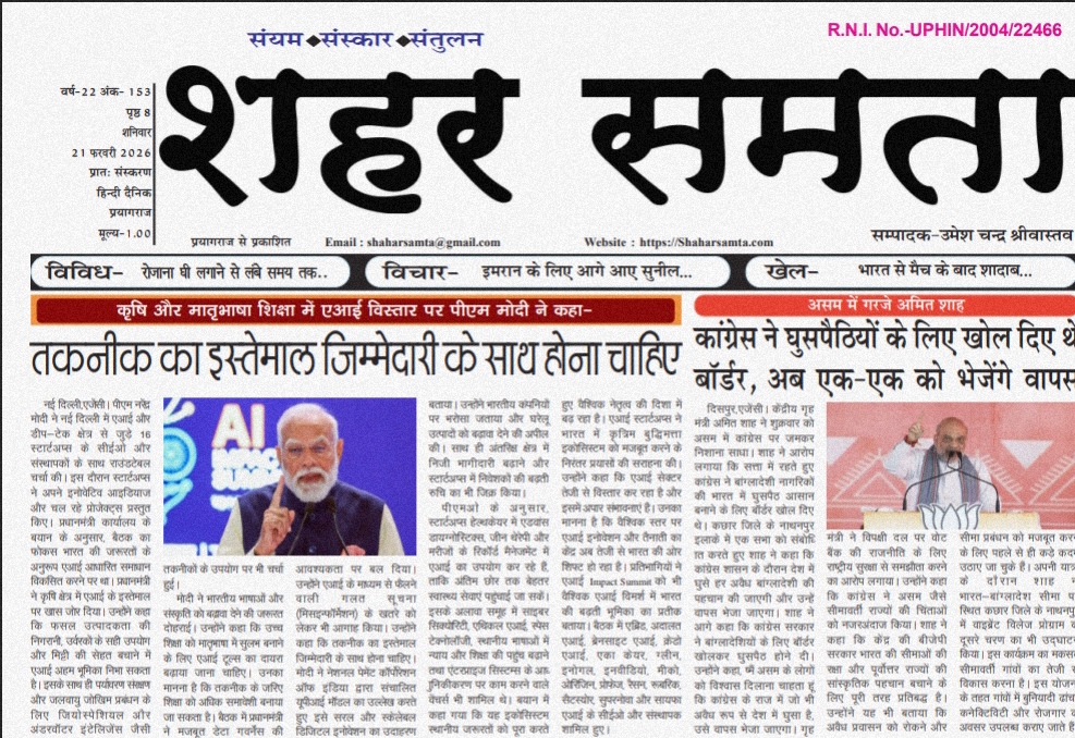 इलाहाबाददैनिक E Paper । 21 फरवरी 2026 By shaharsamta - 21 February 2026 0 124 FacebookTwitterPinterestWhatsApp 21 feb- Shahar SamtaDownload