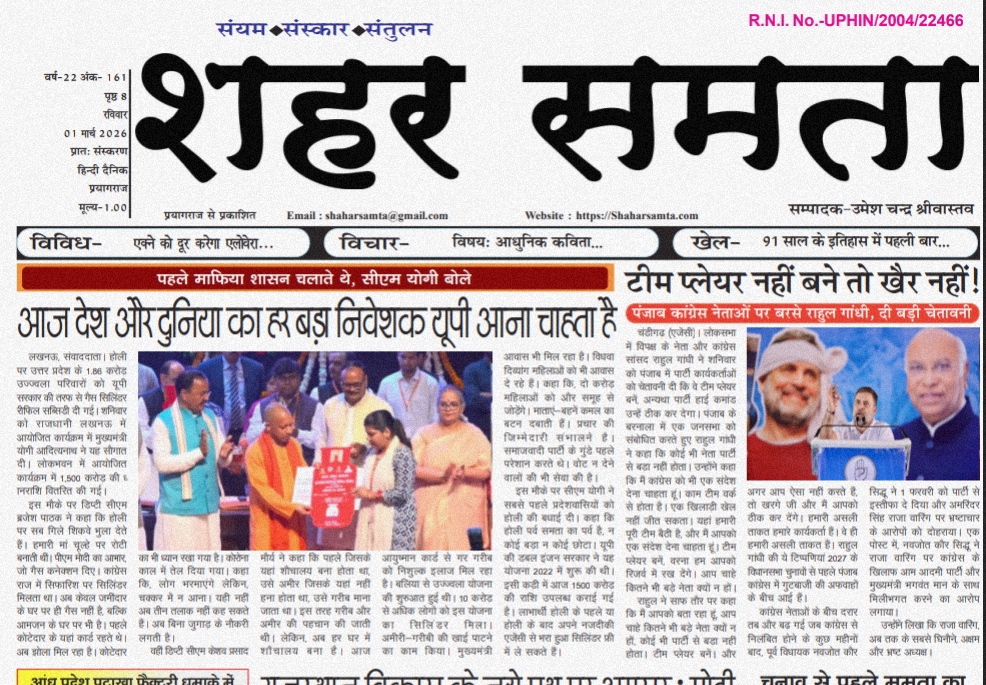इलाहाबाददैनिक E Paper । 1 मार्च 2026 By shaharsamta - 1 March 2026 0 77 FacebookTwitterPinterestWhatsApp 01 mar- Shahar SamtaDownload