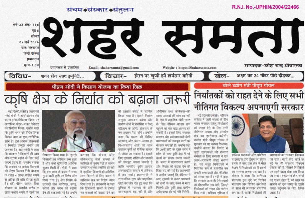 इलाहाबाददैनिक E Paper । 7 मार्च 2026 By shaharsamta - 6 March 2026 0 108 FacebookTwitterPinterestWhatsApp 07 mar- Shahar Samta Download