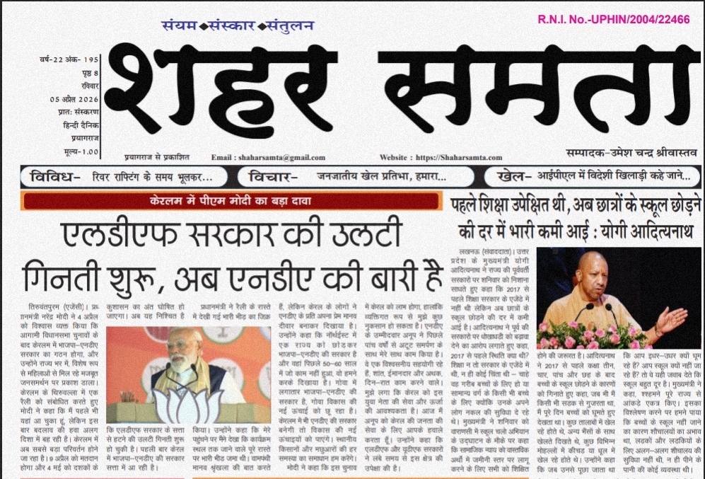 इलाहाबाददैनिक E Paper । 5 अप्रैल 2026 By shaharsamta - 5 April 2026 0 136 FacebookTwitterPinterestWhatsApp 05 apr- Shahar SamtaDownload