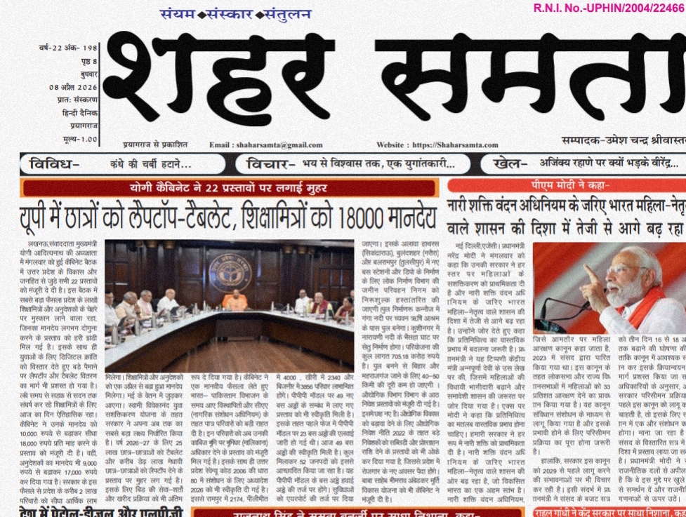 इलाहाबाददैनिक E Paper । 8 अप्रैल 2026 By shaharsamta - 8 April 2026 0 137 FacebookTwitterPinterestWhatsApp 08 apr- Shahar SamtaDownload