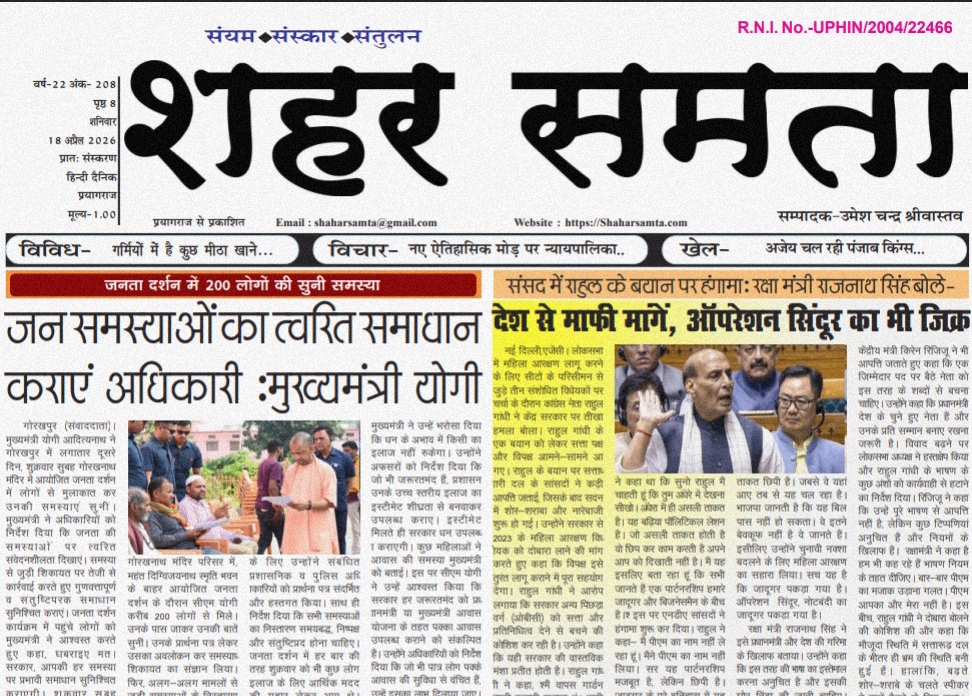 इलाहाबाददैनिक E Paper । 18 अप्रैल 2026 By shaharsamta - 17 April 2026 0 33 FacebookTwitterPinterestWhatsApp 18 apr- Shahar SamtaDownload